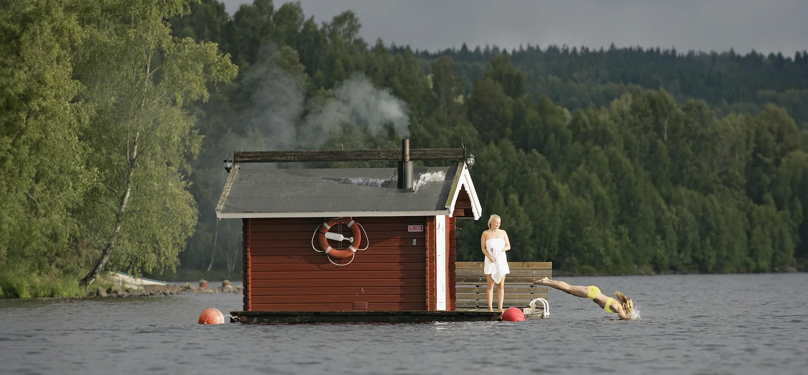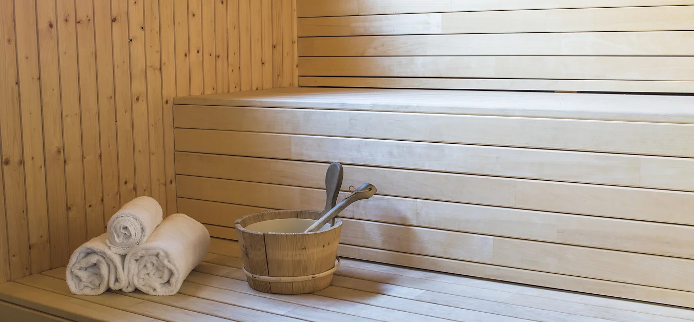 Koppla sedan av i bastun. Omklädningsrum finns för både honom och henne.